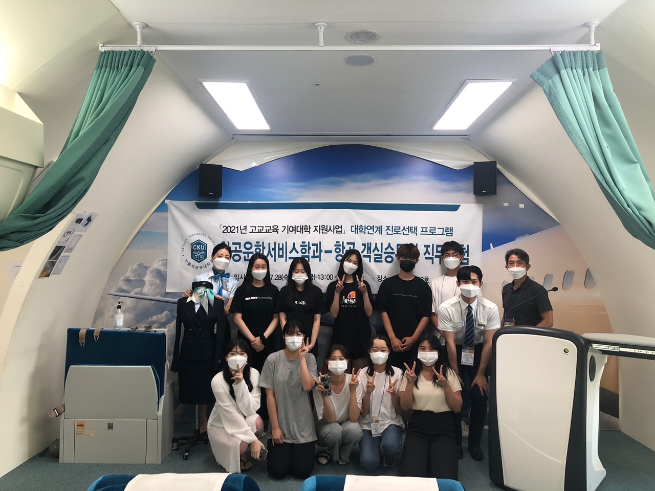 가톨릭관동대학교 창조관 509호 기내실습실에서 10여명의 강원지역 남녀 고교생들은 항공운항서비스학과 교수님들의 열띤 강의에 귀를 쫑긋 세웠다.