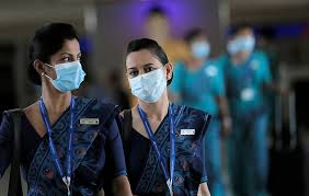 항공사 승무원 코로나바이러스 마스크 쓰고 서비스
