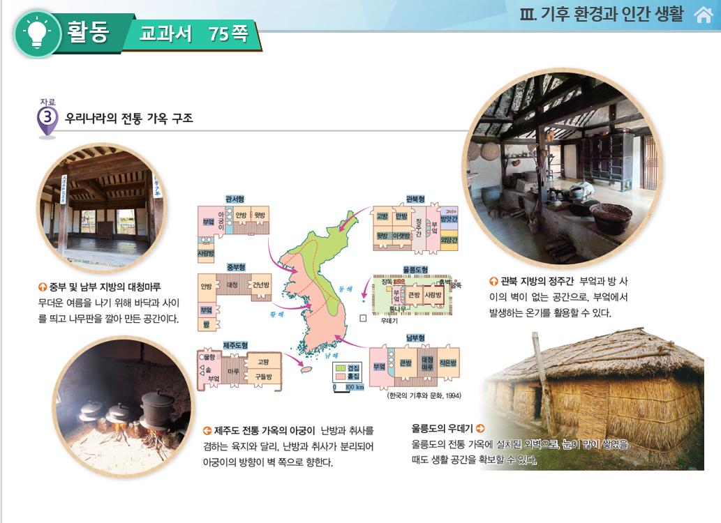 같은 방법으로 굴피집, 제주도의 가옥도 검색해보고. 중부지방의 가옥으로 안동하회마을 검색해서 좀 찾아보기 바래요.